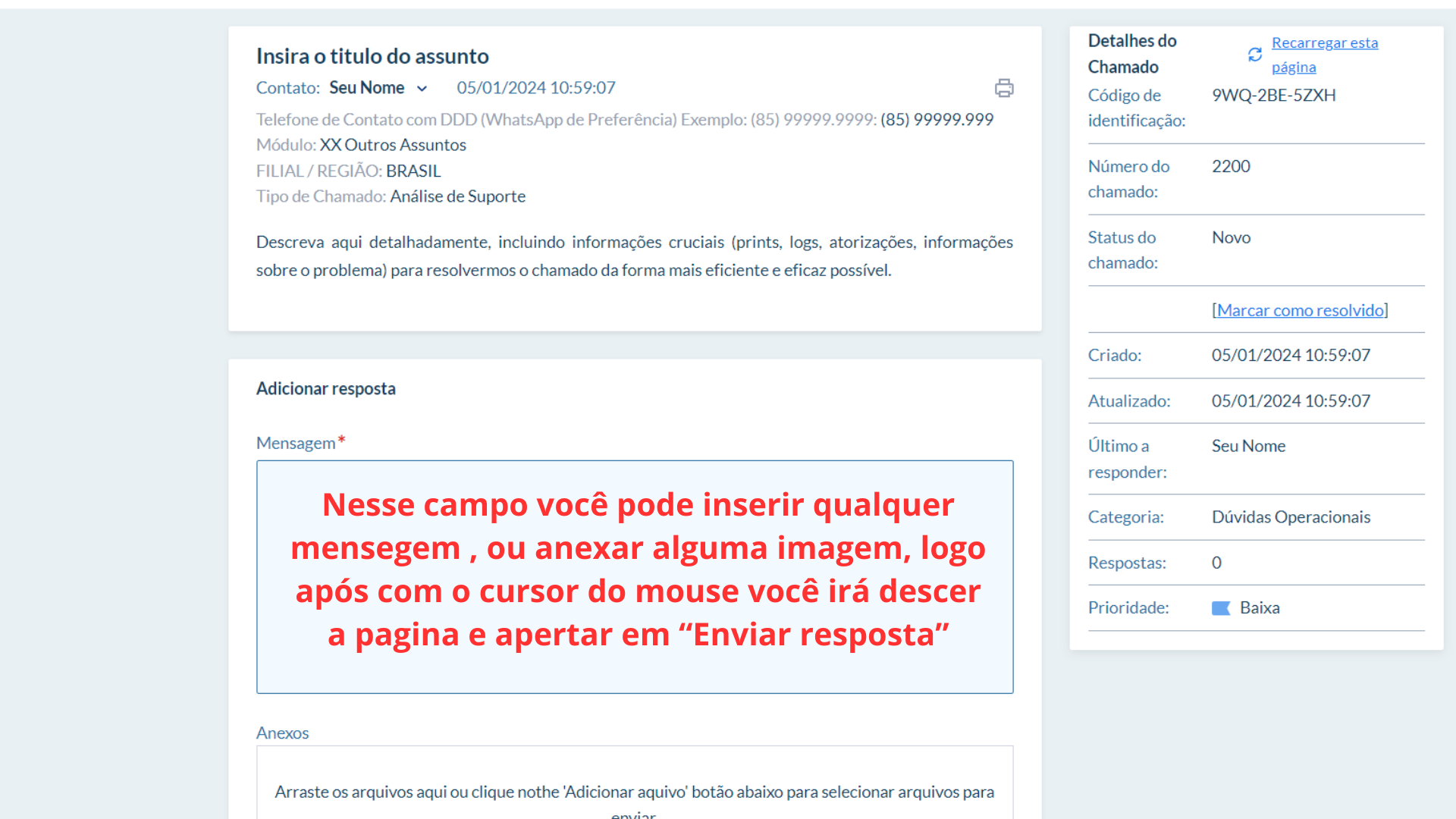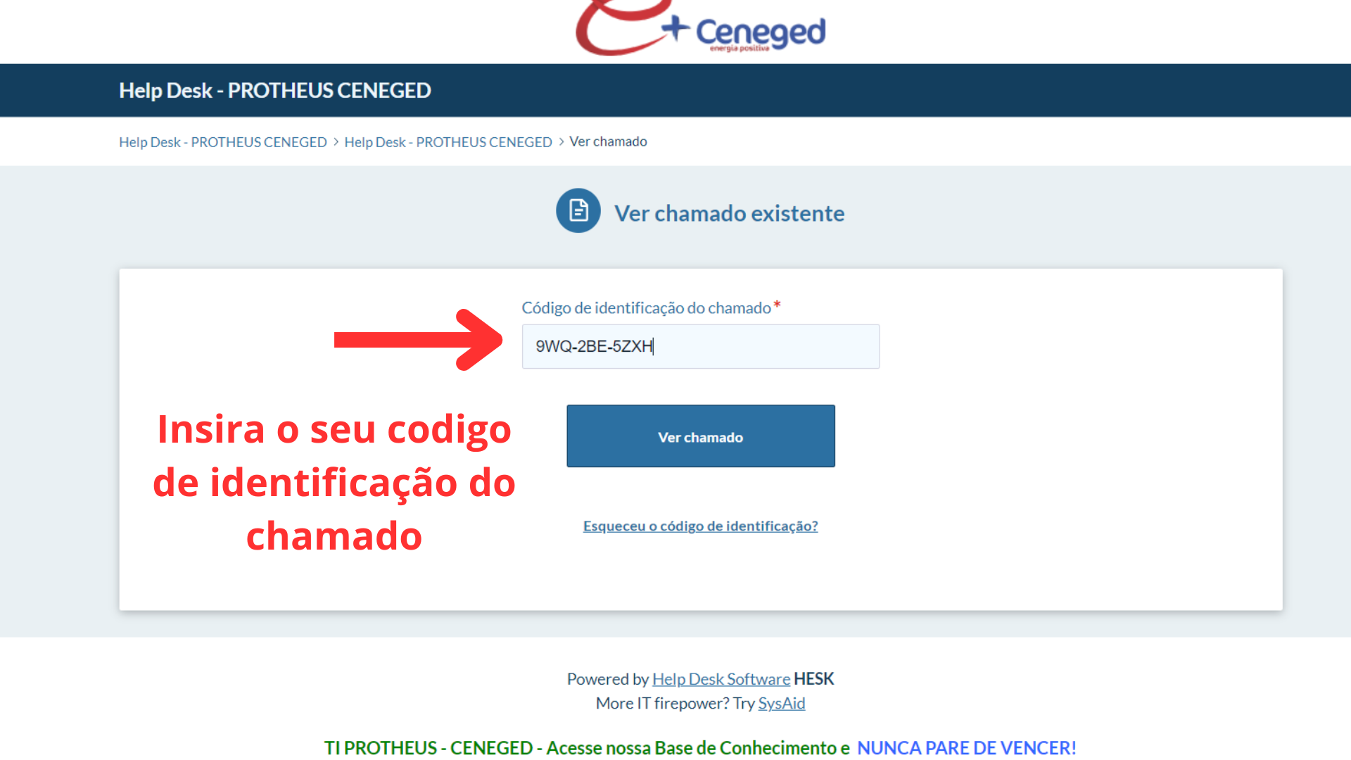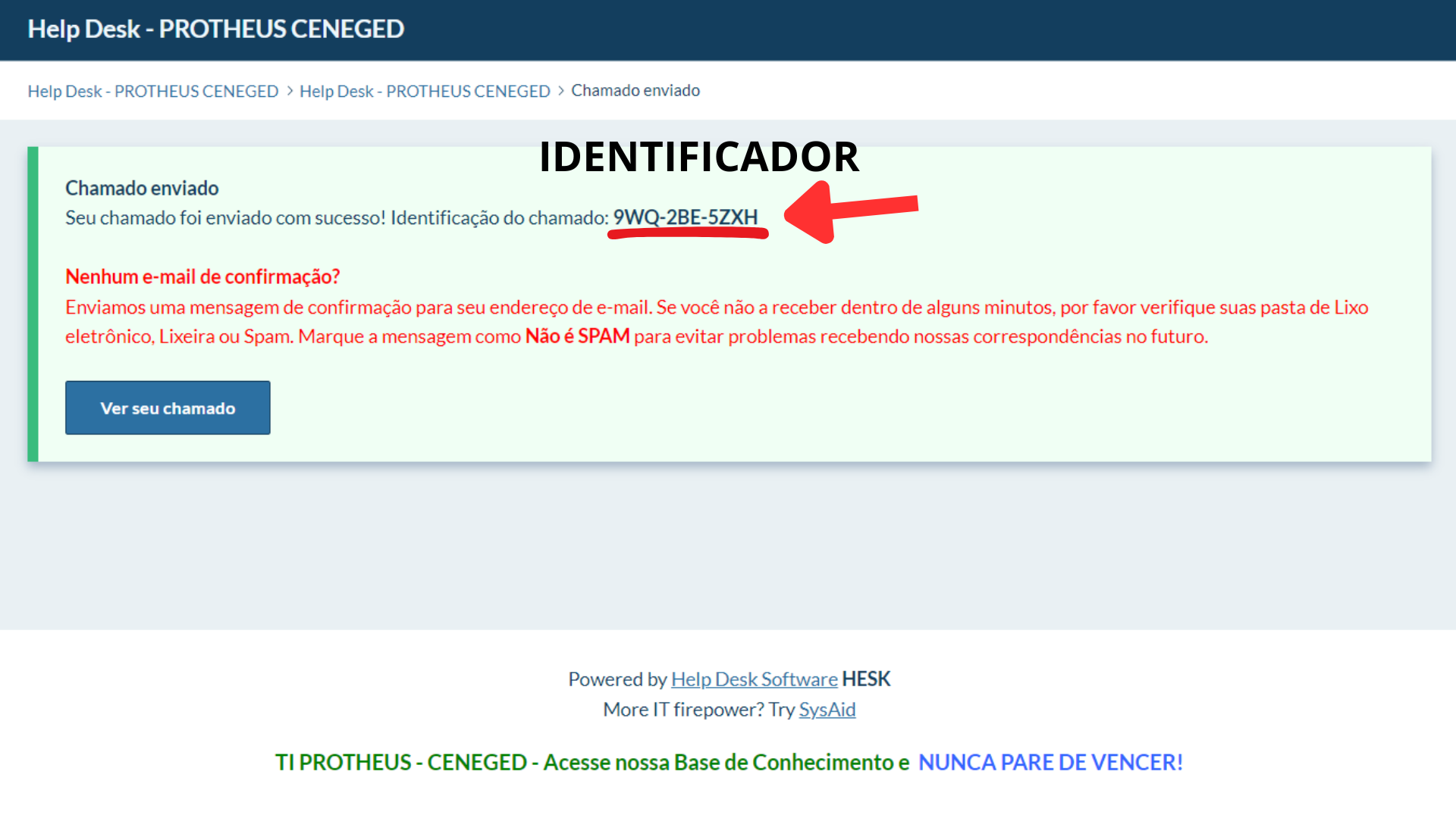 Após confirmação do chamado anote o ID de Identificação e siga as orientações conforme as imagens a seguir: