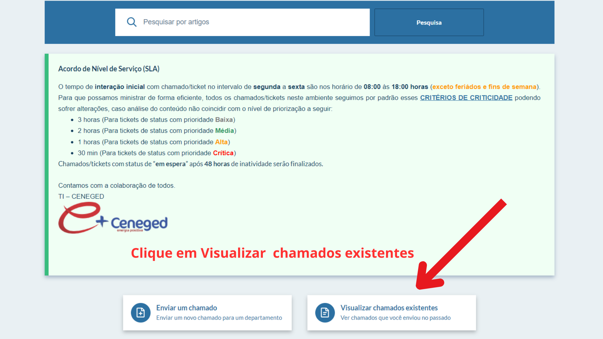 Este artigo irá auxiliá-lo a interagir nos chamados abertos em nosso SISTEMA DE CONTROLE DE CHAMADOS CENEGED.