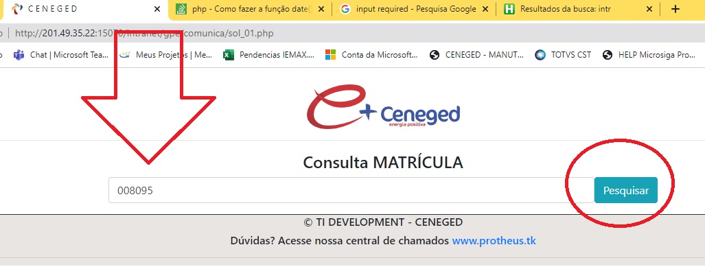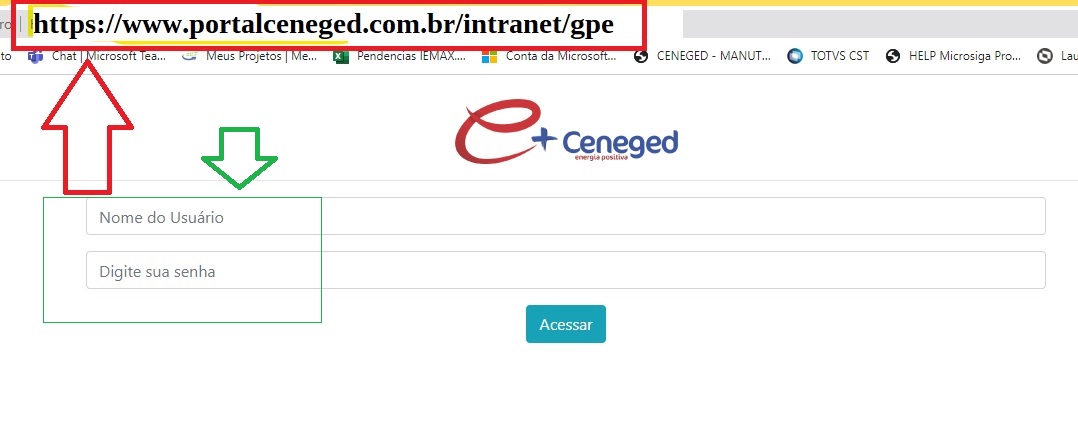 1) Acesso o endereço : https://www.portalceneged.com.br/intranet/gpe