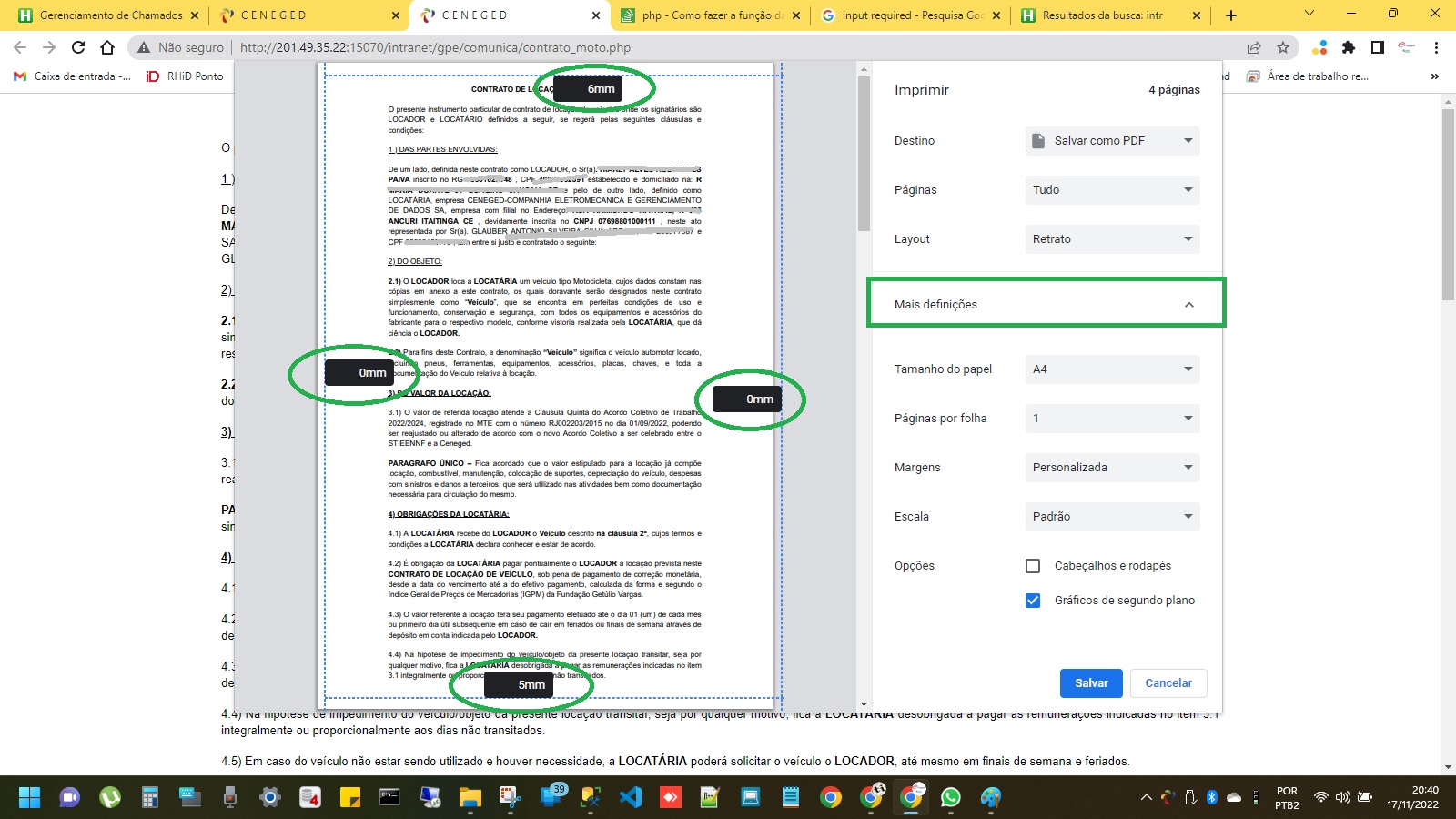 5) Para impressão recomendamos que utilize os recusos do navegador Chrome...