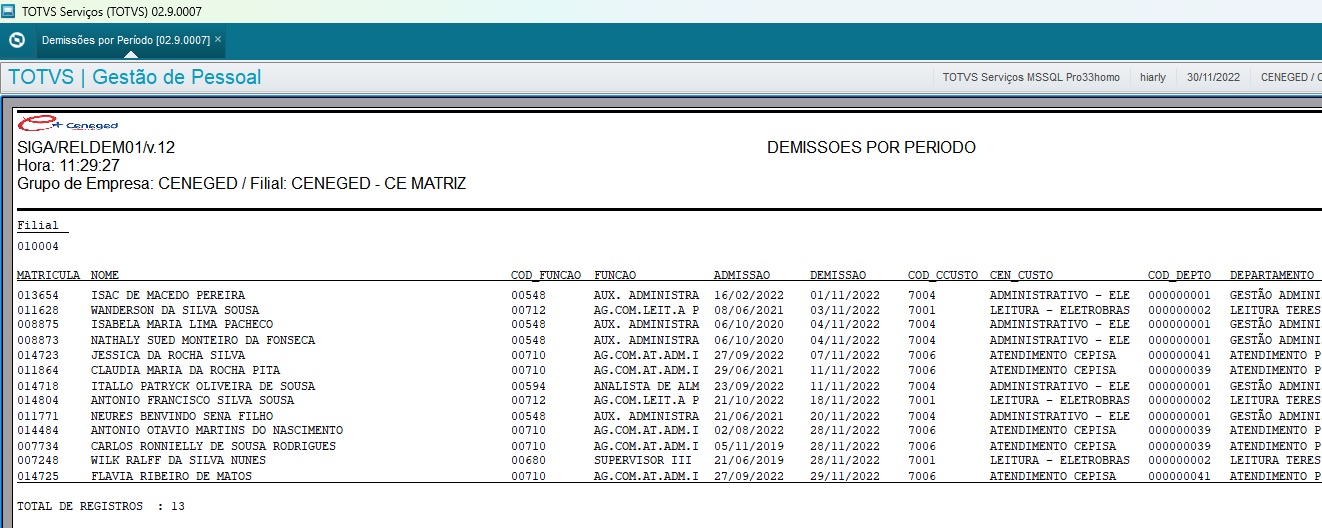 Olá!! Este artigo irá ajudá-lo a emitir relatório de demitidos por período no sistema ERP PROTHEUS – CENEGED.