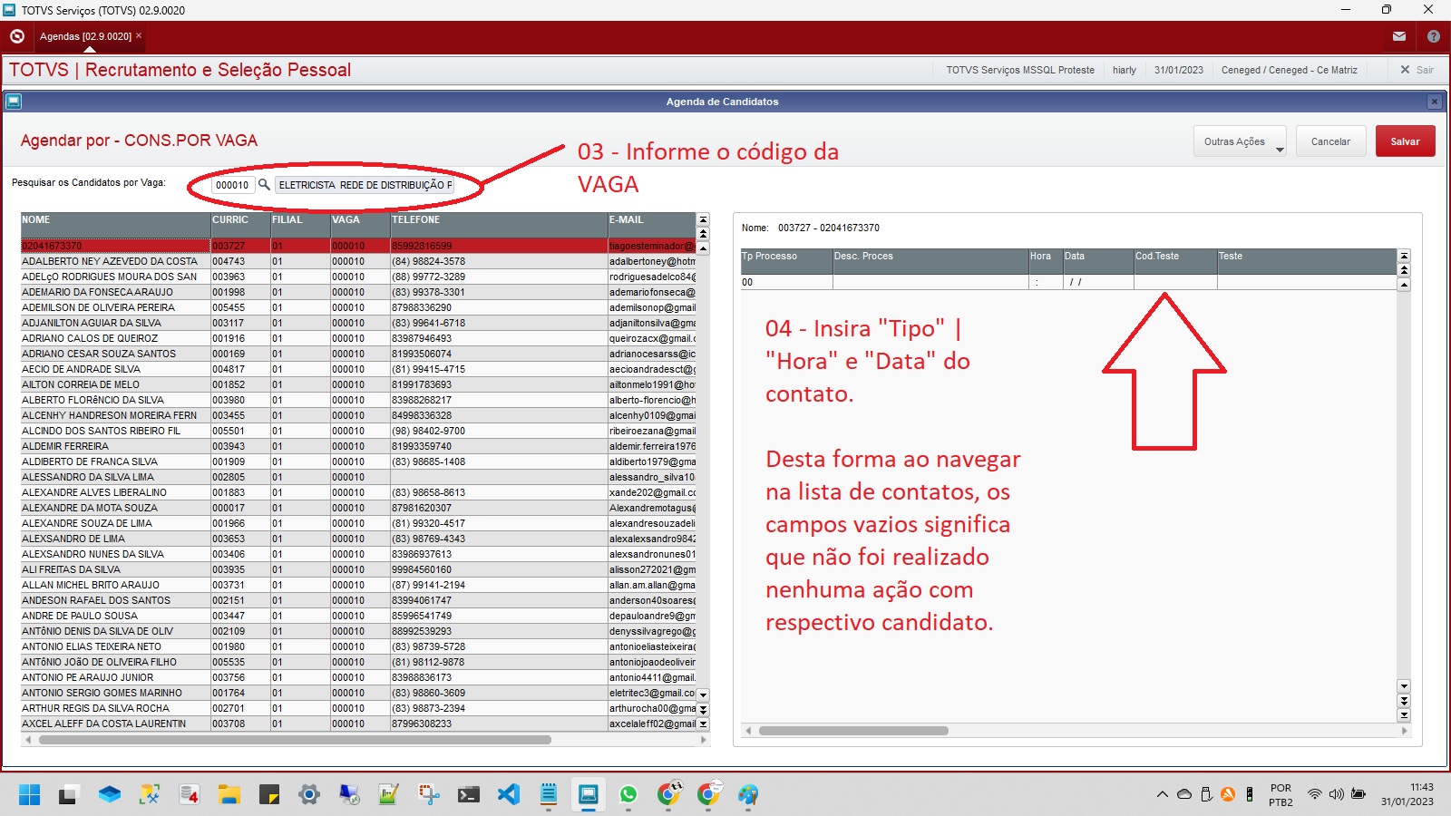 Como registar as ações relacionadas ao Candidato - Agendamentos