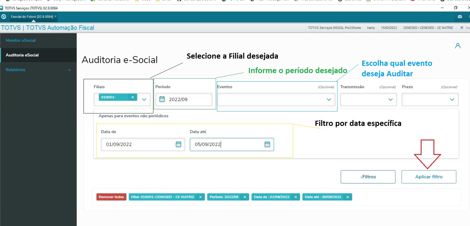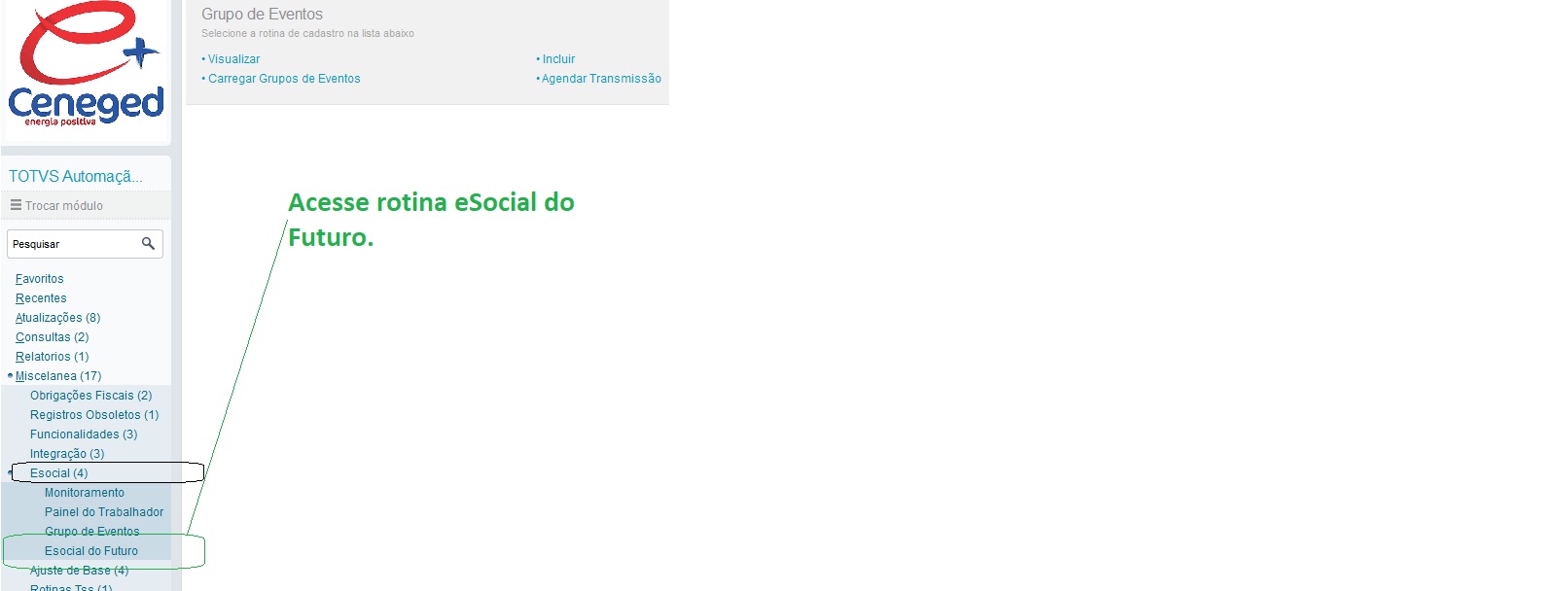 Acesse o módulo 84 – SIGATAF » Miselanea » eSocial » eSocial do Futuro.