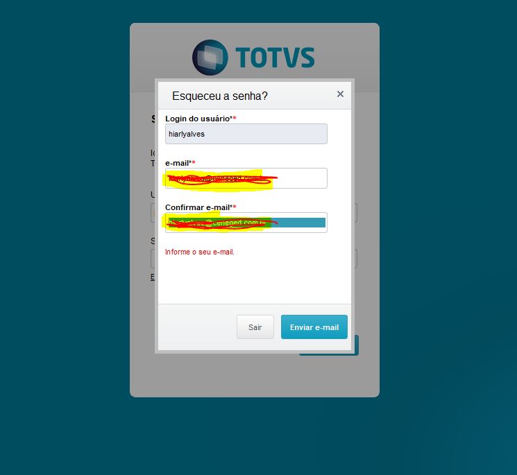 2) Informe seu email cadastrado no sistema ERP Protheus