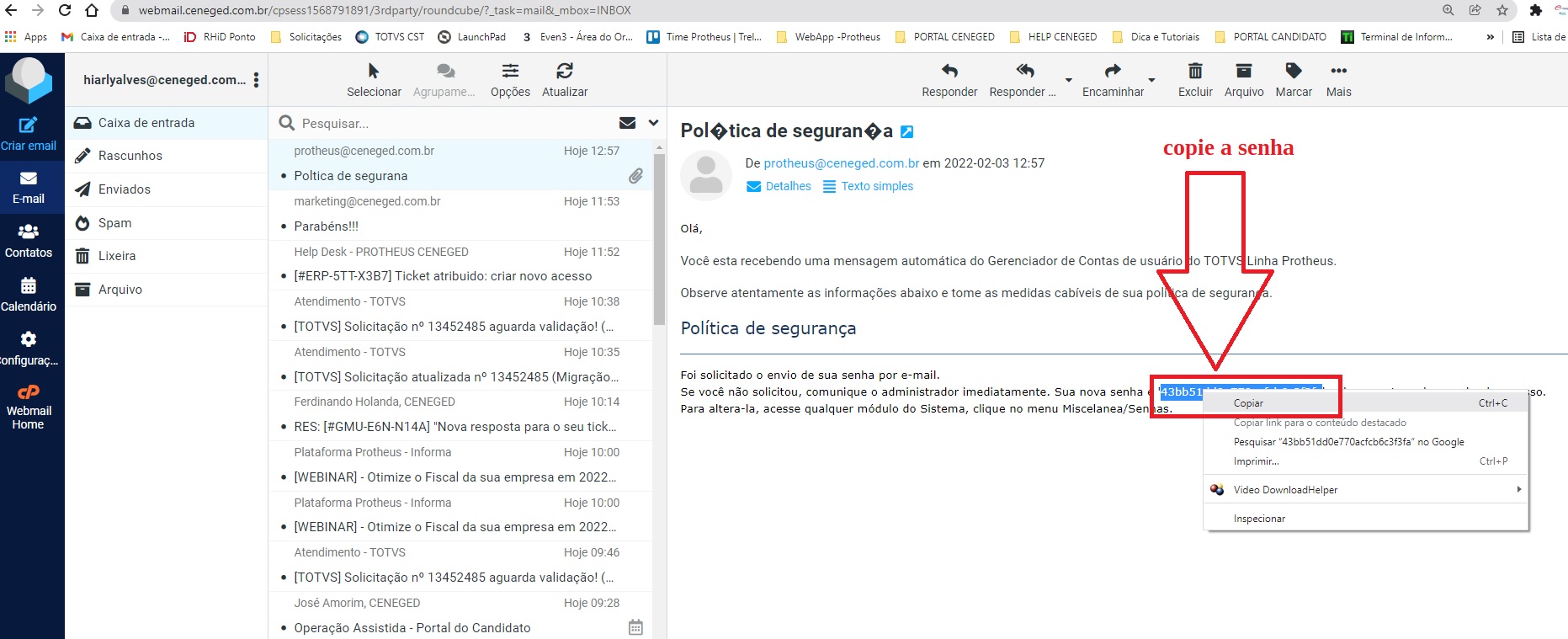 3) Acesse seu email e copie a senha provisória conforme imagem abaixo...