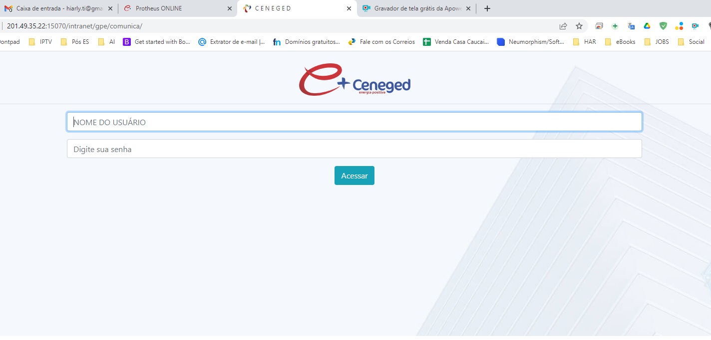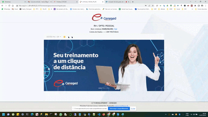 1) Acesse www.portalceneged.com.br/protheus e navegue até o menu +RECURSOS » RH – DPTO. PESSOAL