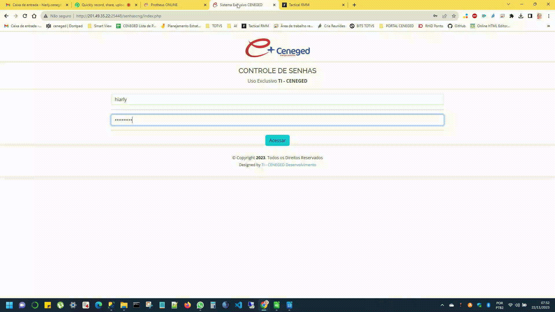 Este artigo irá auxiliá-lo a acessar o CONTROLE DE SENHAS para o www.portalceneged.com.br/protheus e assim acessar os recursos disponíveis no sistema.